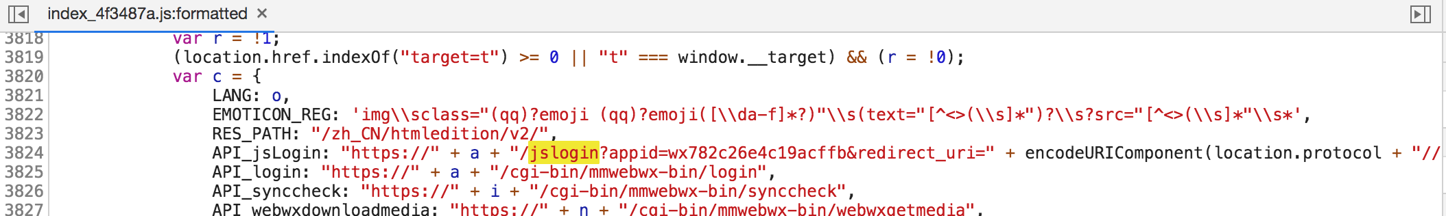 API_jsLogin = 'https://login.wx.qq.com/jslogin?appid=wx782c26e4c19acffb&redirect_uri=https%3A%2F%2Fwx.qq.com%2Fcgi-bin%2Fmmwebwx-bin%2Fwebwxnewloginpage&fun=new&lang=zh_CN'