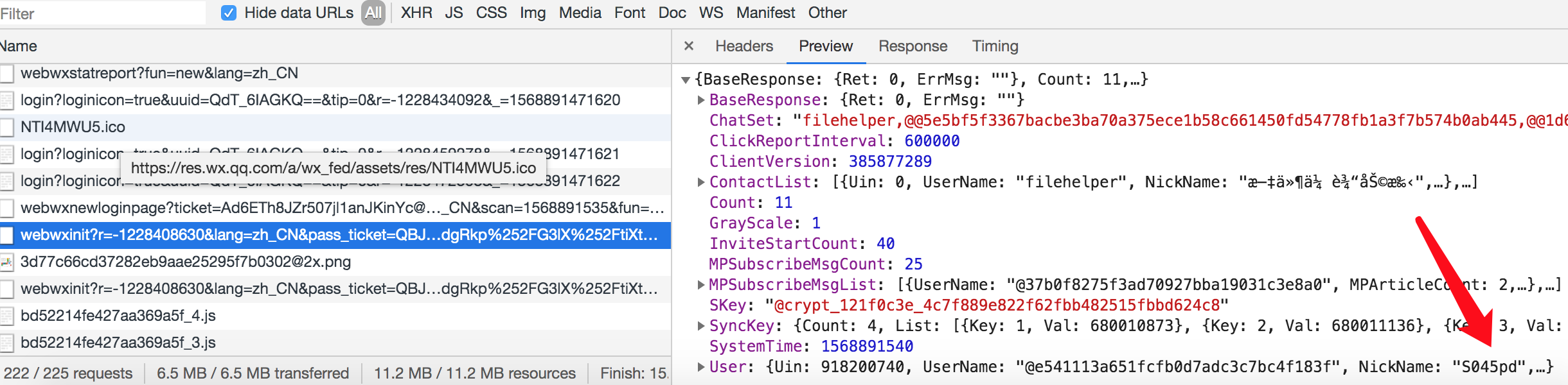 MPSubscribeMsgList公众号列表SKey一个重要的参数SyncKey一个消息交互的重要参数SystemTime系统时间User用户信息HeadImgUrl头像NickName昵称Sex性别Signature个性签名UserName当前ID